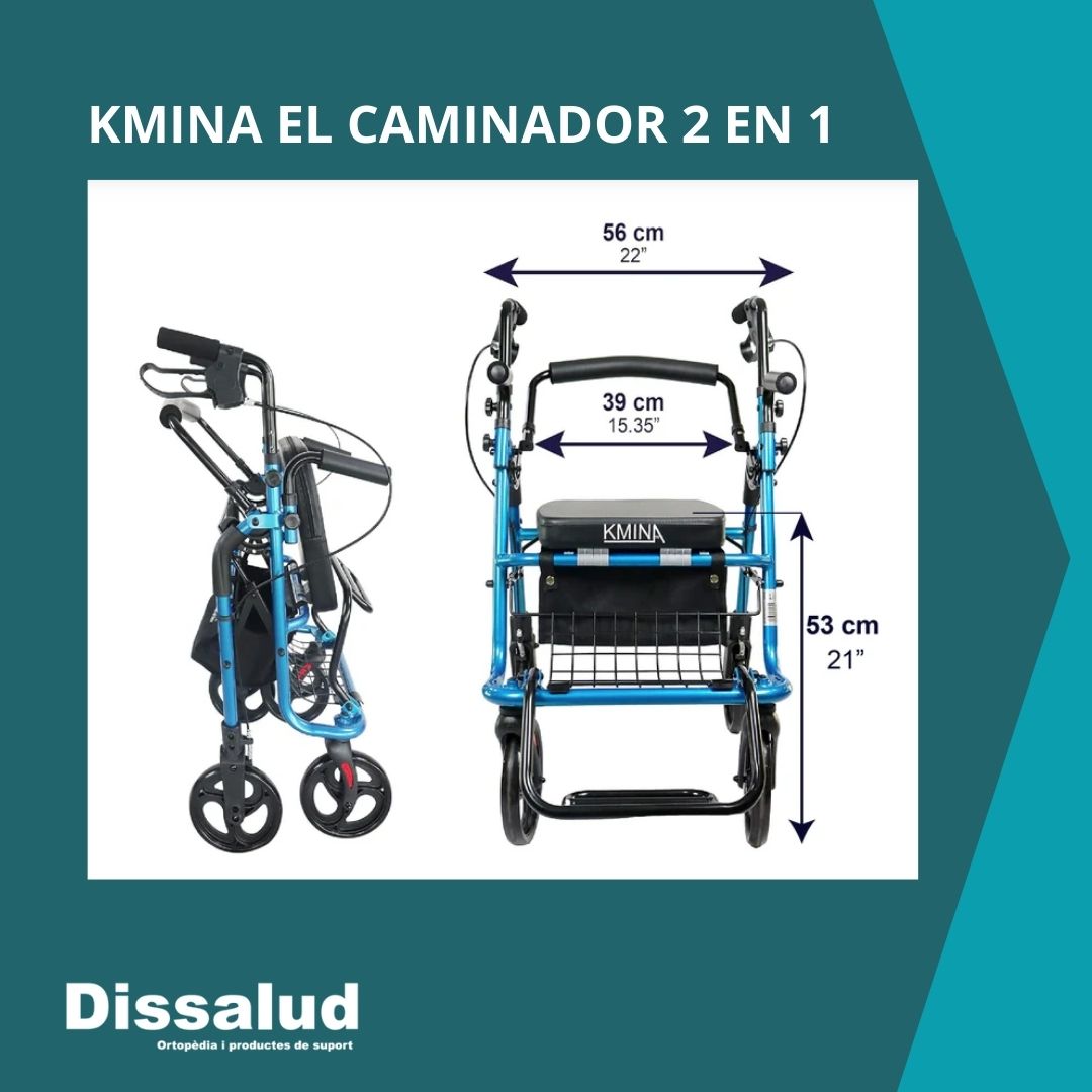 El KMINA és un rollator lleuger, estable i maniobrable, dissenyat per facilitar els desplaçaments diaris. Però allà on destaca realment és en la seva doble funcionalitat: pot convertir-se fàcilment en una cadira de rodes ocasional, ideal per a moments puntuals on la persona necessita descansar o ser acompanyada.